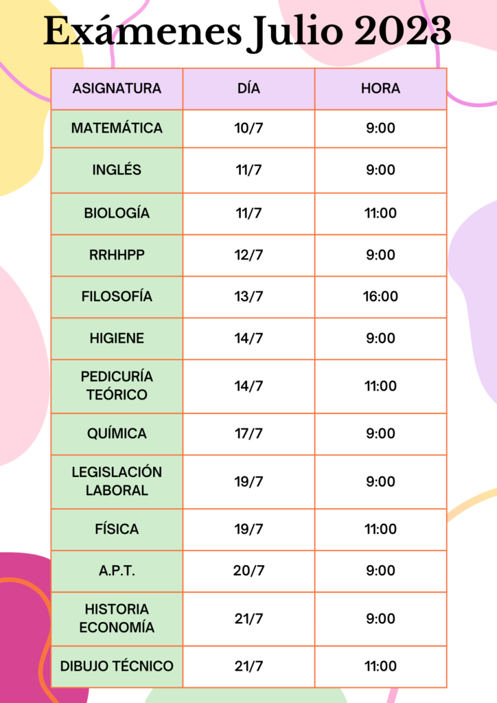 Exámenes julio 2023 Publicación de la entrada:20 de junio de 2023 También podría gustarte Horarios 5 de marzo de 2025 Exámenes pendientes 5 de junio de 2024 Tutorías exámenes período de setiembre 2024 28 de agosto de 2024