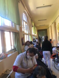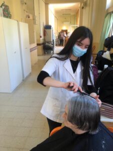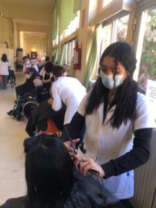 Estudiantes y docentes de la Escuela de Belleza brindaron un servicio de corte de cabello y cuidado de manos a personas de la tercera edad, residentes del Piñeyro del Campo, en una tarde sumamente enriquecedora para todos.